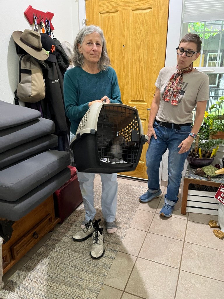 Rescued by Northwest Animal Companions, reared by Enid Traisman, and introduced to us by Clody Cates at Gifty Kitty, Moxie ( the faded calico) and her sister Molly ( the grey tiger) have come to live with us!