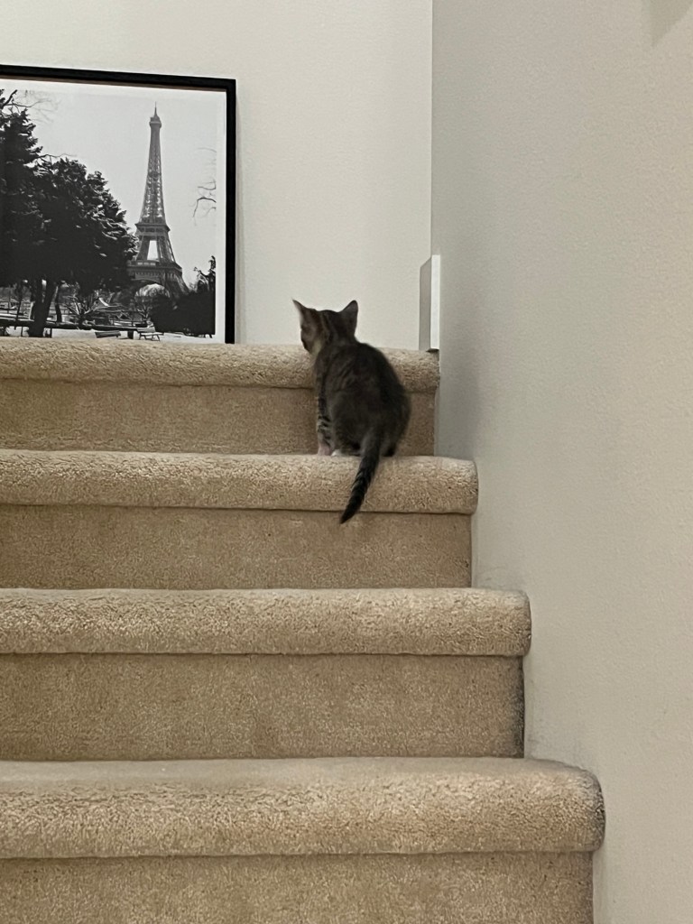 They play “Queen of the Box” and “Kill the Ribbon” , as well as the old favorite, “Ambush Humans on the Stairs.” We are having to keep an eye out all the time.