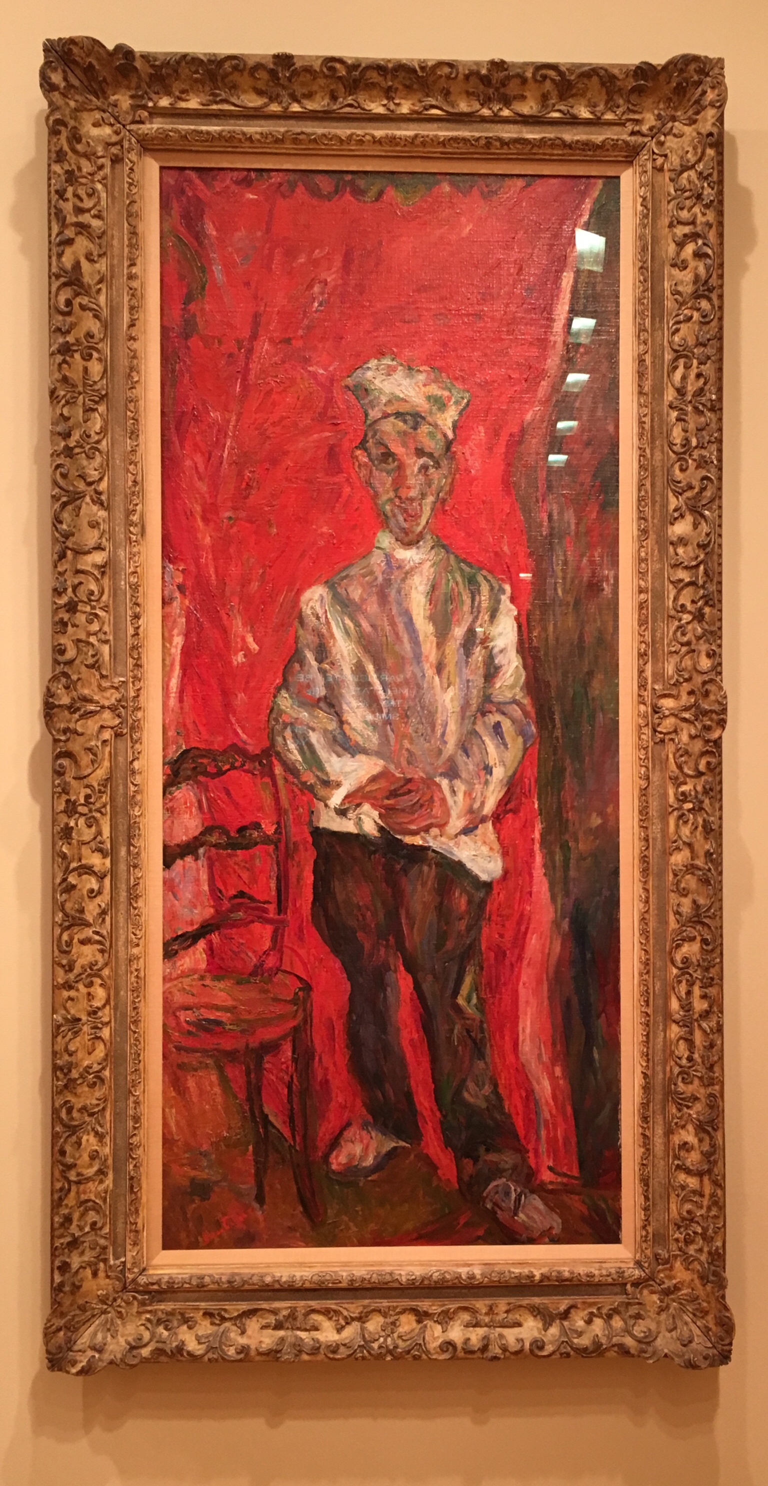 One of my favorite paintings in this portrait called The Little Pastry Chef ( Le Petit Patissier ) by Chaim Soutine. It is so adorably cartoony that I just love looking at it. It was painted by Soutine, a poor Prussian Jew who left home in the 1920s to study art in Paris. He was successful, but when the Nazis invaded France, he hid in the woods and only returned after the war. He died soon after, but his works were saved.