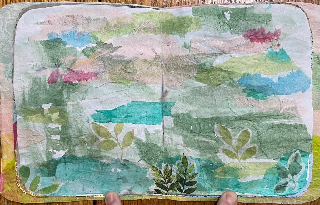 I started with my project, laying down colors in a pleasingly haphazard way. Wet but not runny, brushing to blend until I liked it.