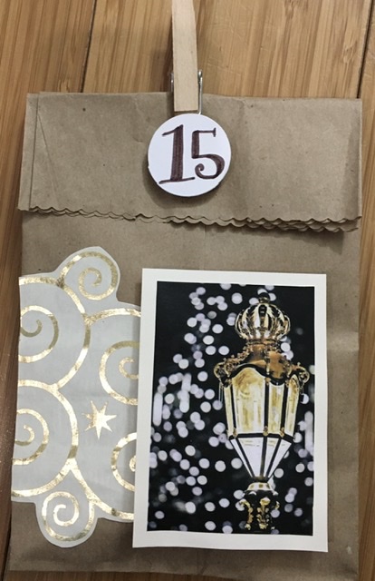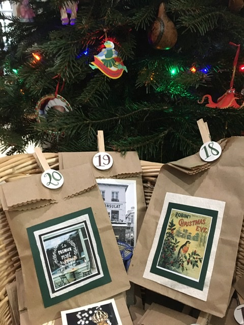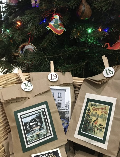 We re-use the bags every year by filling them with sweet things, which become evening surprises as we approach the holiday.