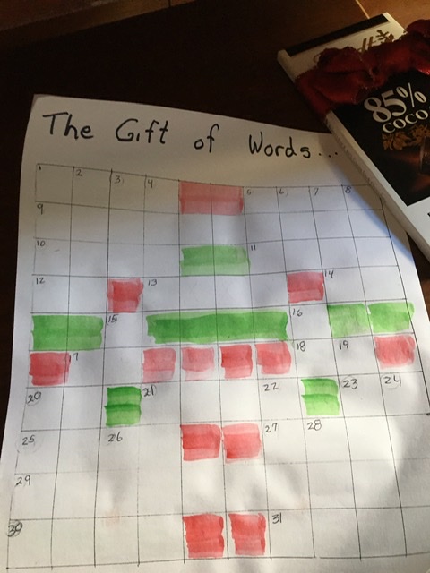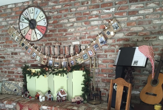 You’ve seen the advent calendar that Auntie Bridgett made years ago. It is adorably decorated paper sacks that we hang on a ribbon. We’ve now used it in three different houses!