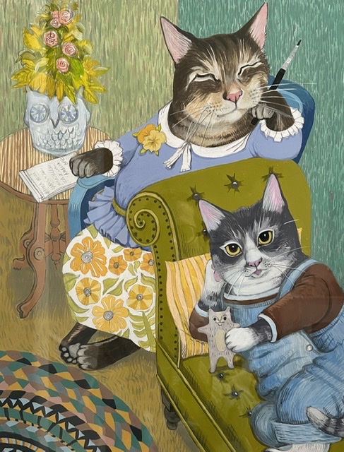 As the crowds started showing up, Bridgett started drawing, and several folks came by to ask about hiring her to draw their cats! She said yes, of course!