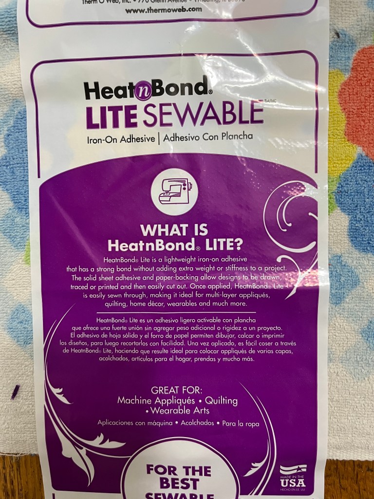 I chose Heat n’ Bond lite sewable fabric adhesive and it worked very well so far. I will know more when I start the embroidery and see how easy it is to sew through.