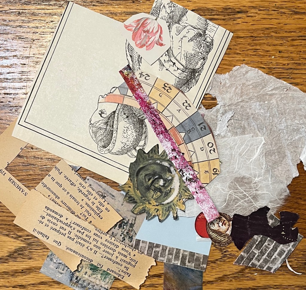 There are so many things I love about collage. There’s really no wrong way to do it, just whatever looks right to you. I try a few bits together to see which colors play well together, and wait to put the most detailed bits on near the end.
