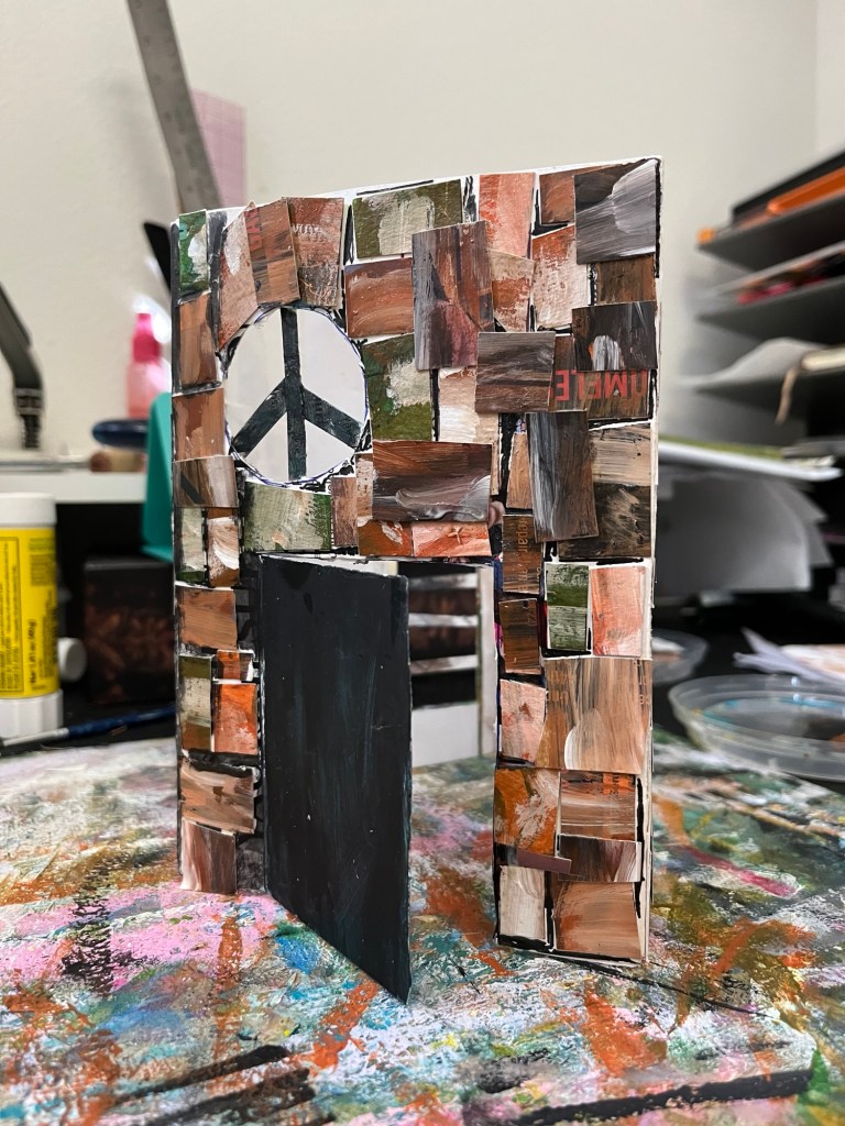 Sometimes I need to make a few tries at a project before I get it right. At our last ZOOM art group, Ruthie Inman had us start this vase of flowers, made with the windows from business envelopes. Mine turned out really tiny, about three inches high, and I wasn’t crazy about it.