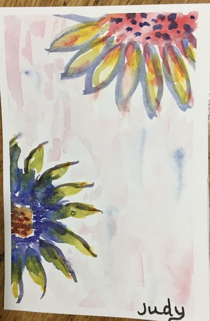 The Zoom Art group got together again this morning and I added this landscape over the splattered page. Not bad, but as it is here, it felt unfinished.