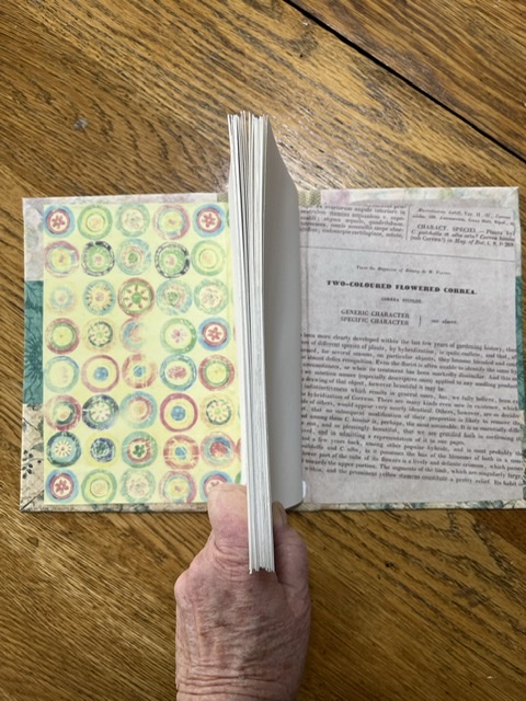 The last step is to cover the inside covers with pretty paper. Press these flat and let everything dry overnight.