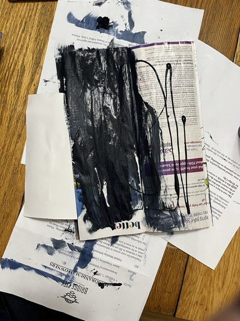 Once we had the journal cover made, it was time for pages. Since this isn’t a journal for writing, but for doing art in, we were free to experiment.