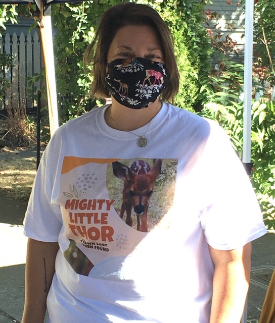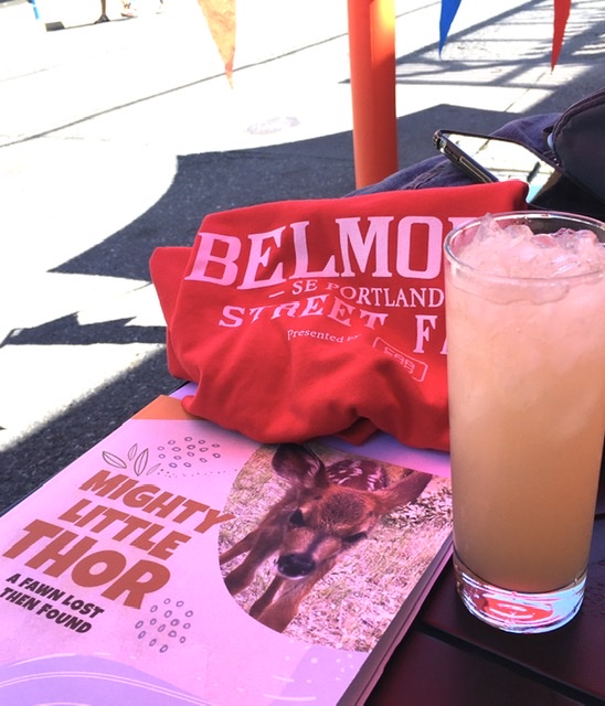 We kept walking down the sunny, happy street, and we found Dawn Rasmussen, a local author. She lives just up the Columbia River at The Dalles, and has written a book about a wild fawn she and her family adopted. The story is called Mighty Little Thor and is written at the third grade level. It stresses respect for wild animals and making sure they stay wild, even as we care for them.