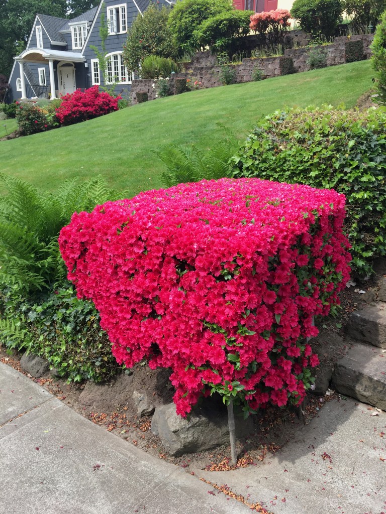 The bees are going nuts, too, though they were skittish and wouldn’t let me get close enough to take their pictures. However, this solid brick of azalea blooms was very patient.