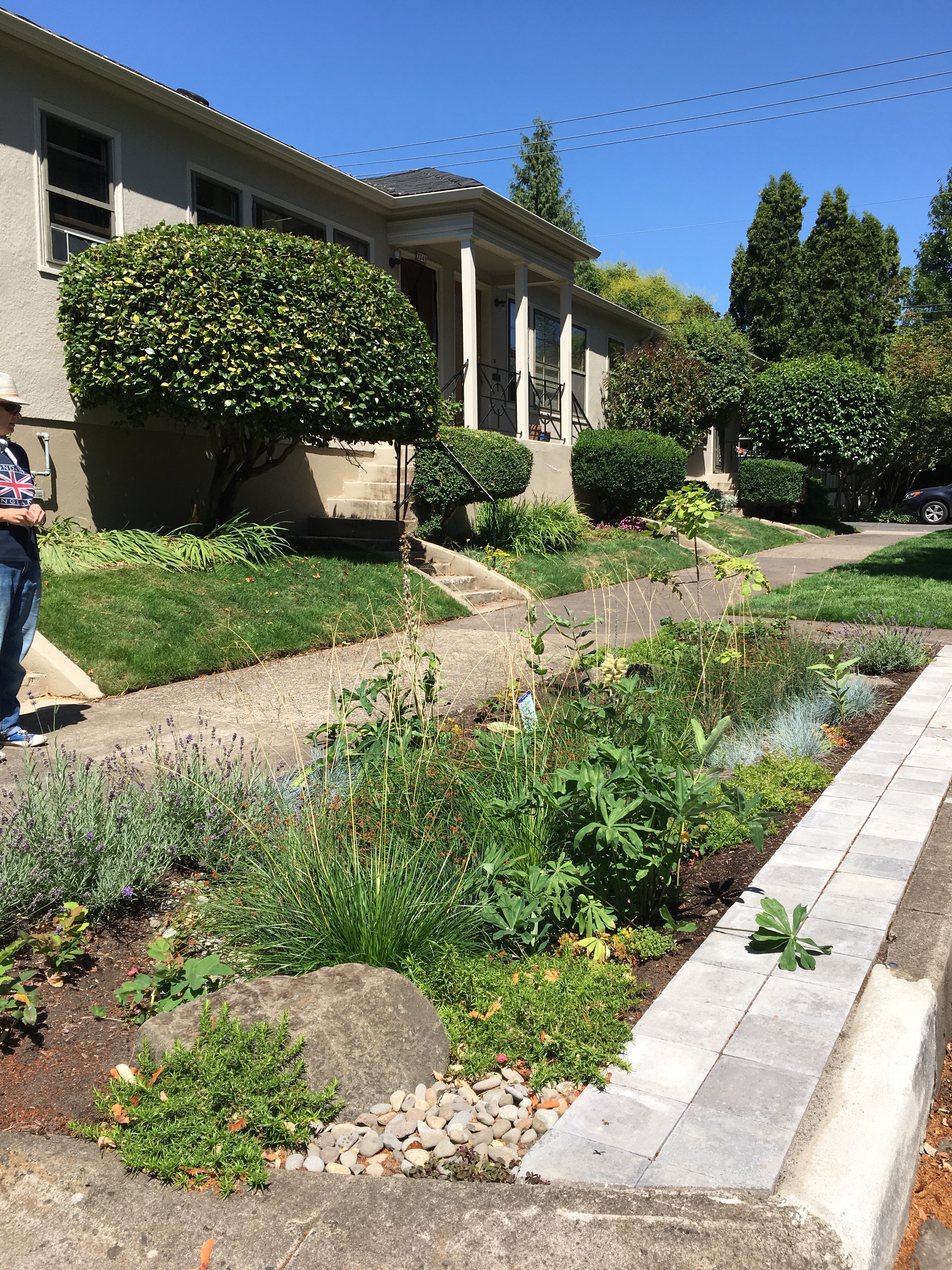 In our neighborhood, this means lovely rippled rivers as gutters flow into bioswales. The bioswales hold the rainwater and let it filter slowly into the aquifer, keeping our Willamette River clean.