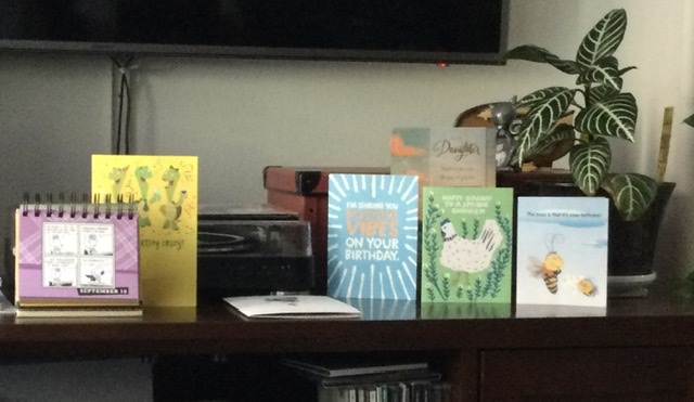 We dropped off the heavy stepping stones and ate grilled cheese and onion sandwiches for lunch. Then I opened my presents! A delightful Shakespearean insult mug from your family and a jigsaw puzzle made from one of Gia Whitlock’s wonderful paintings, from Auntie Bridgett.