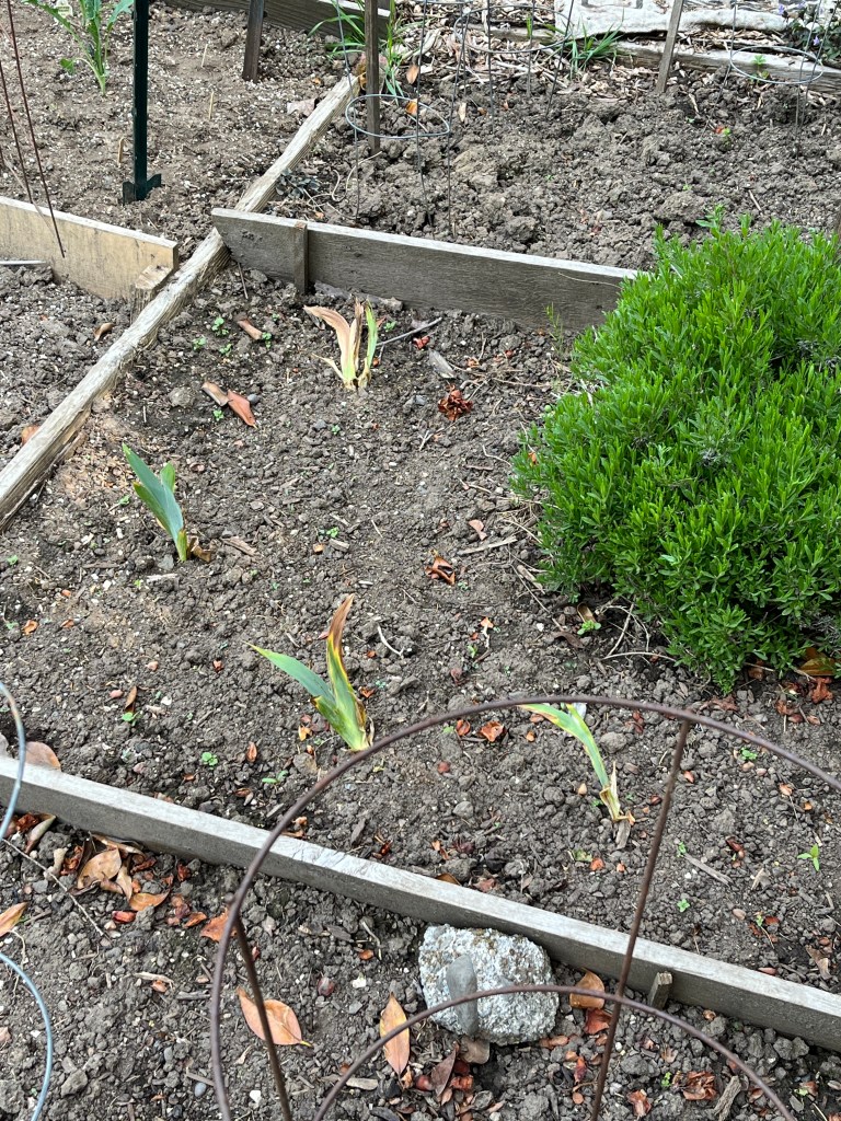 The bearded irises I picked up in a FREE bucket haven’t done much yet, but I’ll be patient. Near them, the lavender we planted years ago is getting lovely and green.