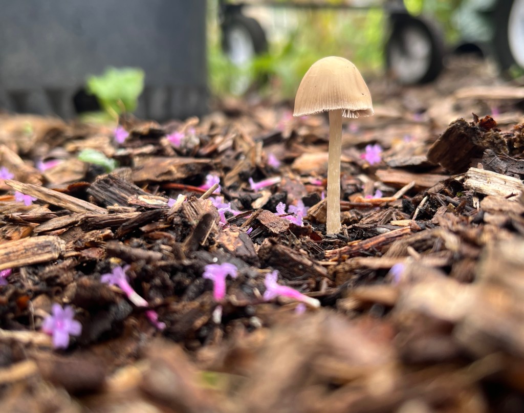 This tiny mushroom was perched in the middle of the path. I didn’t pull it, because it’s not a weed. I just admired it.