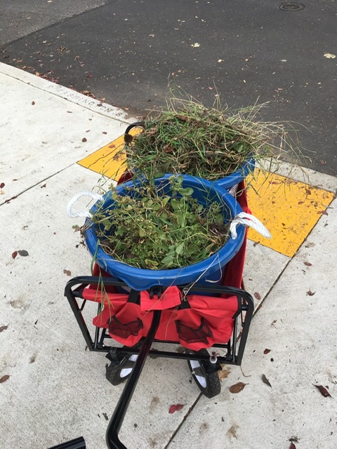 I loaded them, along with the garden tool bag from Auntie Bridgett’s momma Donna and an onion that had been in the pantry too long, into my red wagon and walked the two blocks up to the Blair Community Garden.