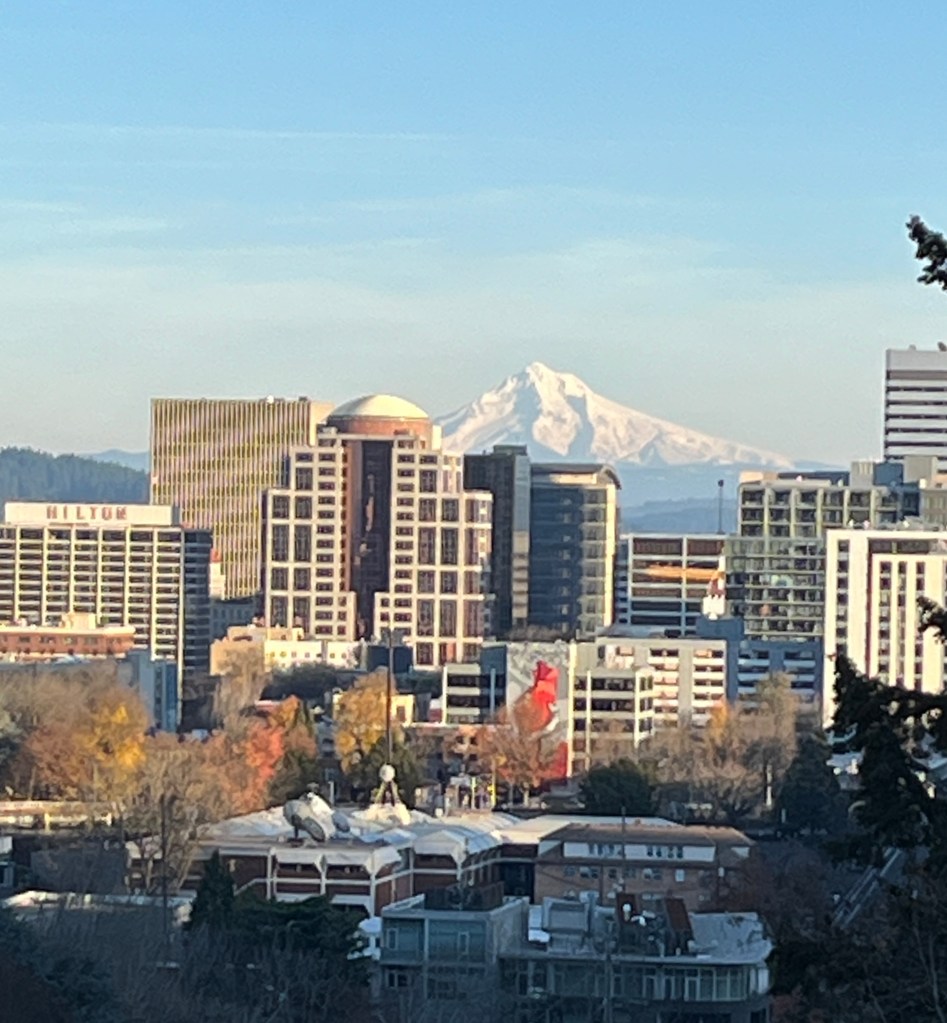 It also, as the name implies, offers some amazing views. Here is Mt Hood, shining brightly behind Downtown Portland.