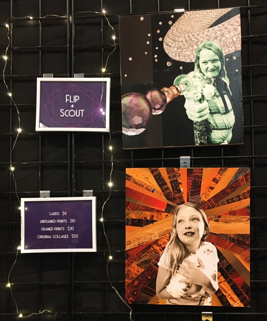 Then there was Flip Frisch, whose business name Flip and Scout. She takes photos of her daughter and uses them in collages. They were interesting, like an action comic hero’s family photos.