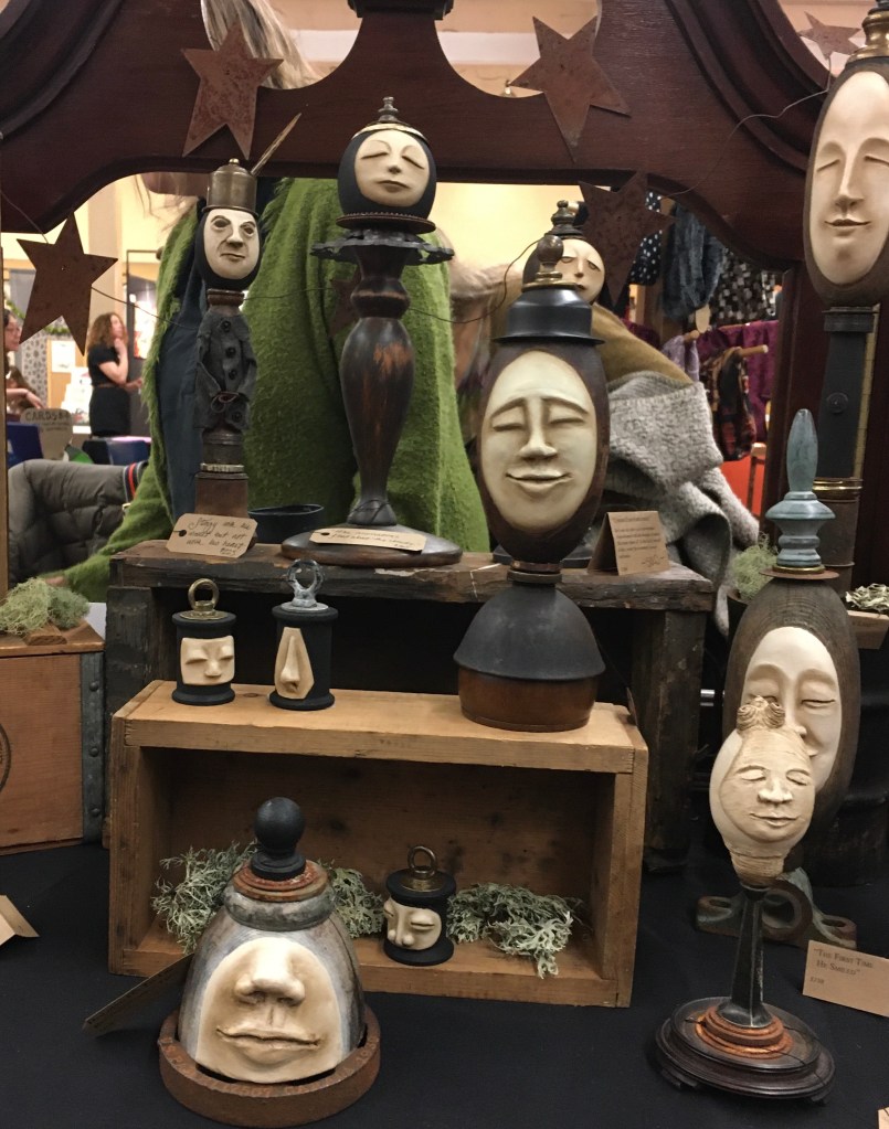 Ceramicist Erica Gibson’s work also caught my eye. Her peaceful but oddly disconnected faces seem to say, “Yes, my body has gone, but I’m cool with that…” They were very relaxed in a room full of parents and kids, a full-on Marimba performance, and the occasional pet dog.