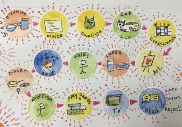 But there’s more! For the Art Journal, I have made art I really like. Mapping my day as a board game and planning my ‘dream houses’ (yes, there are more than one!) have kept me happily introspective.