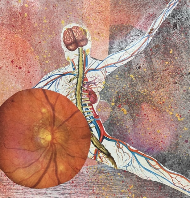 I needed to make a cover for my new Journal, and I wanted a collage. It’s a good size, 9x 12, so I had plenty of room to play with. I found a heavy tag backing from an old watercolor tablet to use as my base.