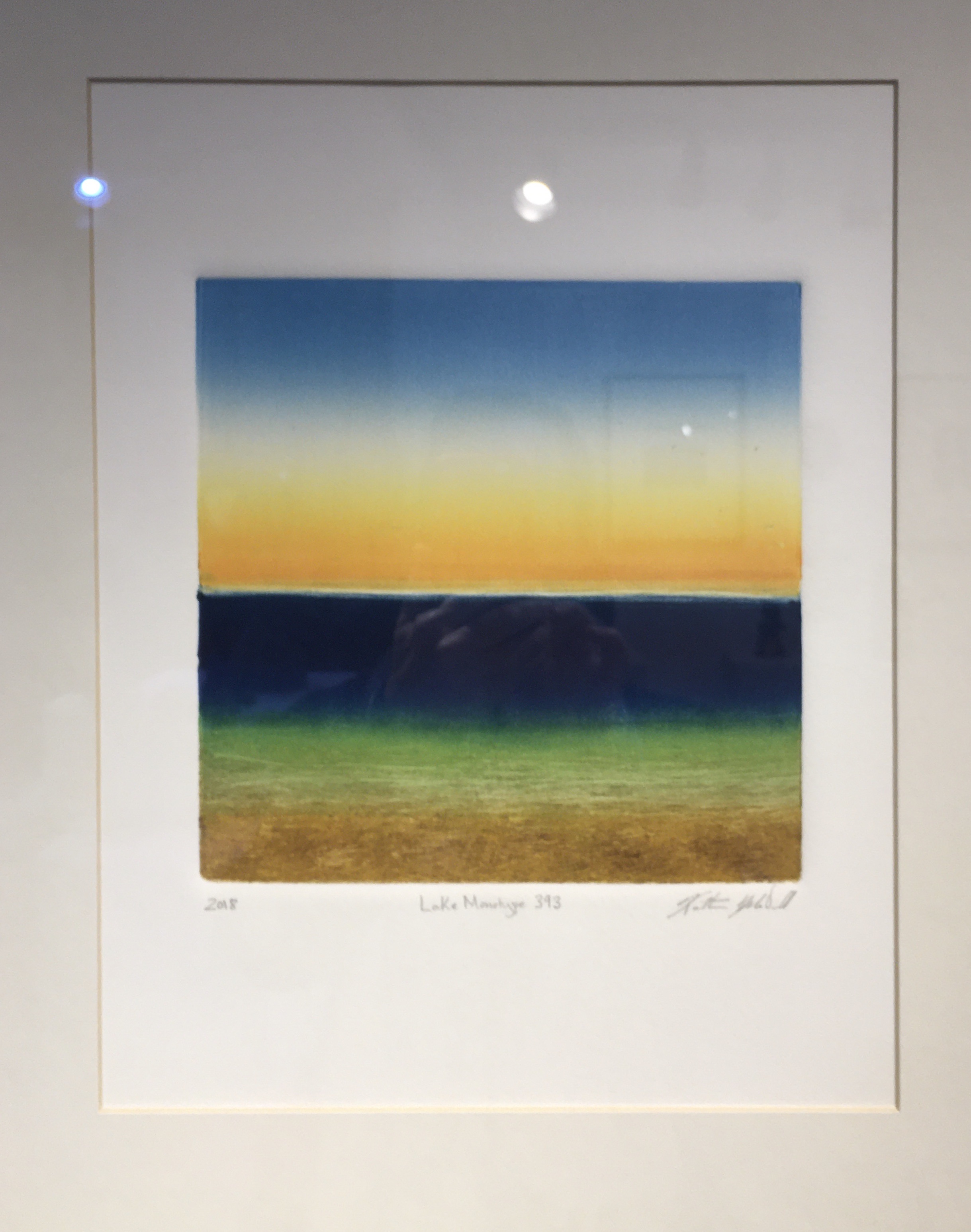 Katherine’s work is colorful, with lots of deep blues and splashes of orange, but also still and restful, because of the horizontal lines. Many of the pieces have an almost ‘sunset’ feel, and I like them very much.