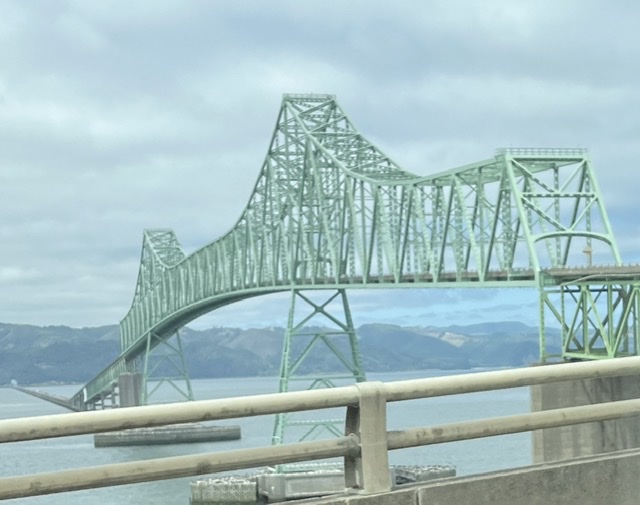 We drove up and up to the high point of the Astoria-Megler Bridge, then swooped down like a rollercoaster to the lowest part, just skimming the white capped waves. Whoosh!