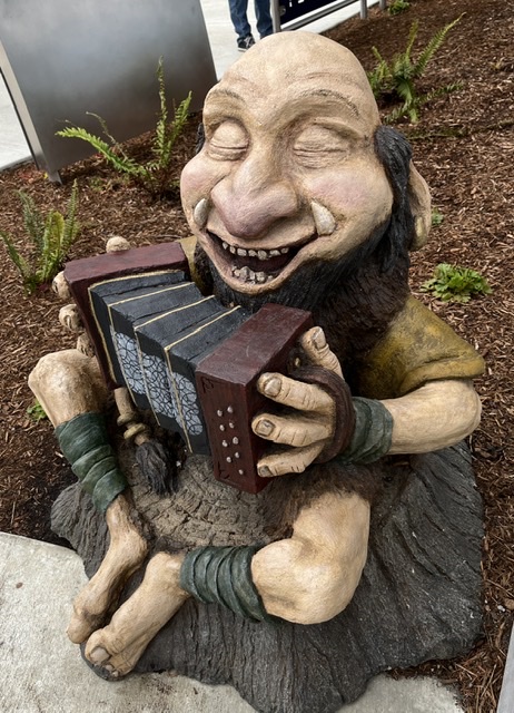 We found an interesting installation showing the history and culture of the people from Sweden, Finland, Norway, and Denmark who came to Astoria in the 1800s as farmers, lumbermen and fishermen. It included images of the maypole, viking ships, flags of the countries, weird and funny trolls, birch trees, and other iconic images.