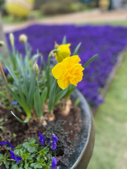 Early spring flowers are used as decorations all over! This wishing well with a planted roof was adorable and seasonal.
