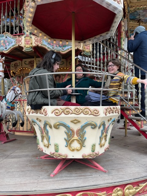And of course, there are rides. Big scary roller coasters, of course, but they are not our speed. Auntie Katie and the cousins enjoyed the spinny teacup on the Carrousel and some small, cartoony planes.