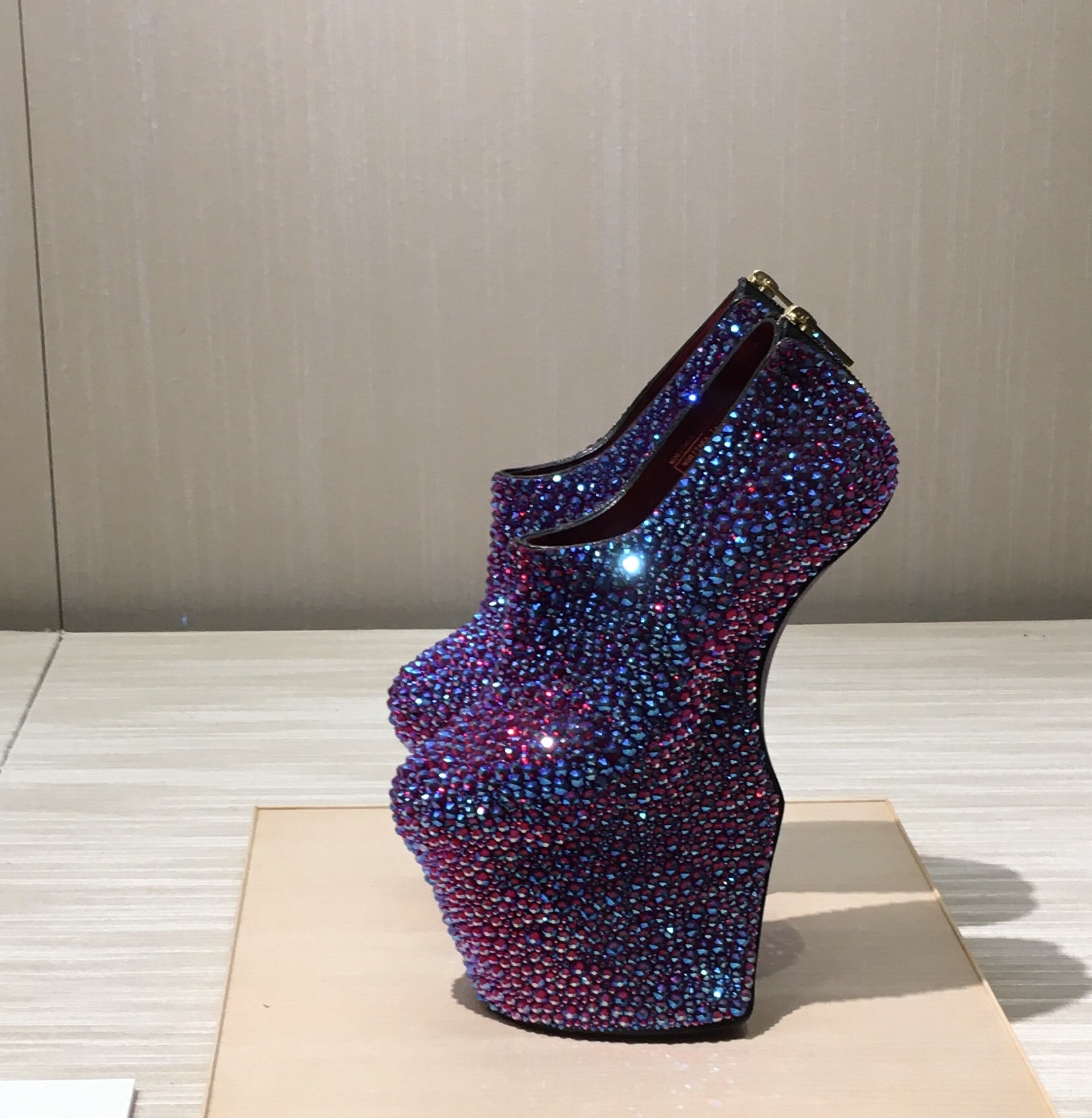 There is an art exhibit at the Pavilion Gallery called “Re-Fashioning Beauty”. The brochure says it is about “embracing past icons of Japanese beauty while looking forward.” There were several articles, never meant to be worn, showing the natural but ridiculous evolution of the platform shoe.