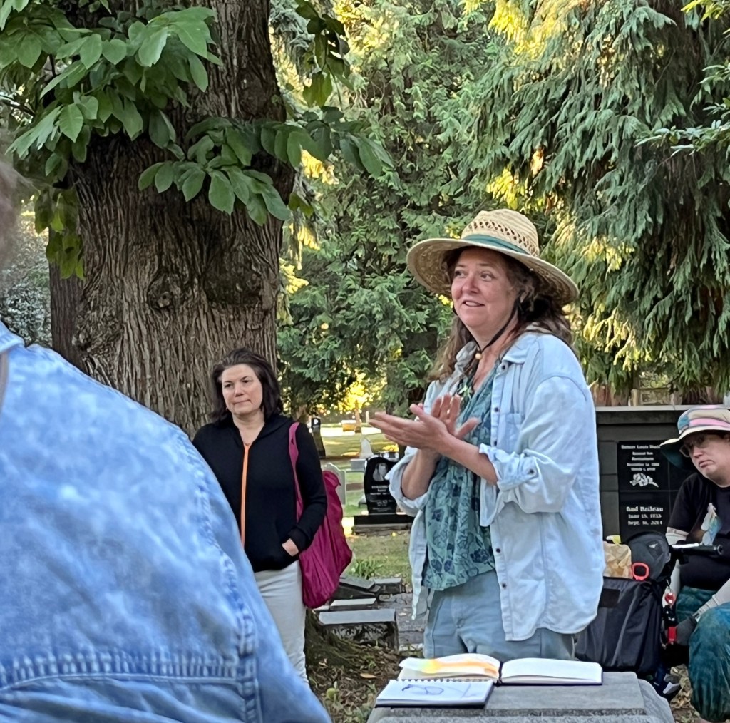 Since Allie lives in our neighborhood, and paints what she sees, many of these sights are familiar to me. Lone Fir Cemetery. Shop fronts on Burnside. Laurelhurst Park.