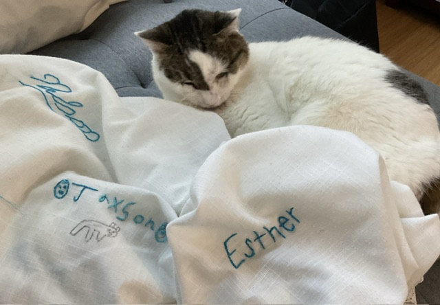 And today, I started embroidering the names so they become permanent.