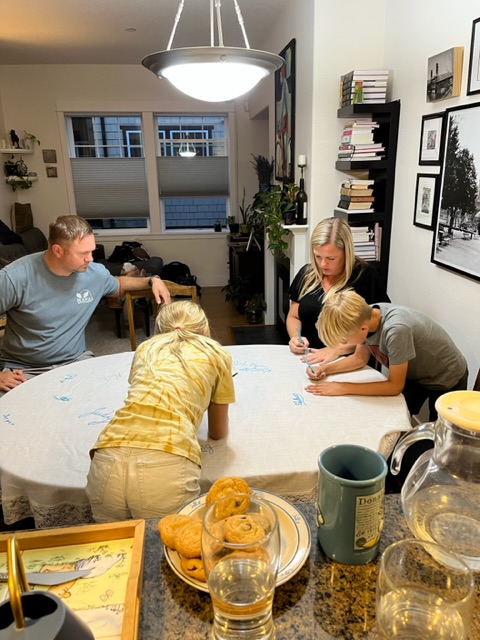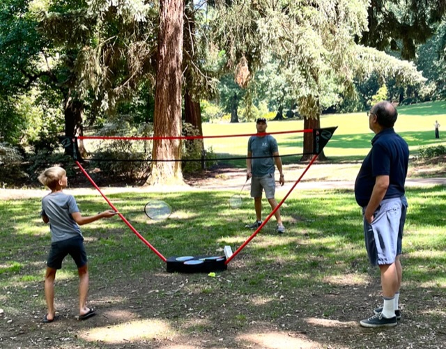 On the family’s second day in Portland, we met up at our house, packed up a picnic, and walked up to Laurelhurst Park. We had seven people and so much equipment, I felt like part of the Lewis and Clark Expedition. Food, drinks, blankets and badminton all got carried by the crew.