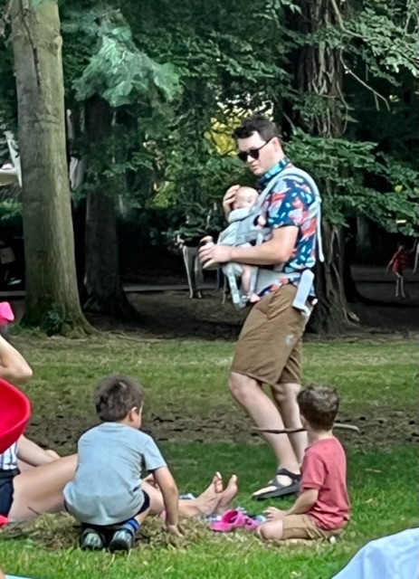 There were Dads carrying infants while supervising young stick-collectors.