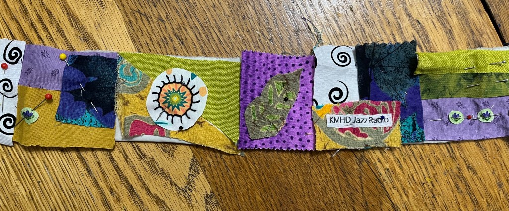 Our small ZOOm art group got together again this week, and I made some good progress on the fabric and paint thingee.