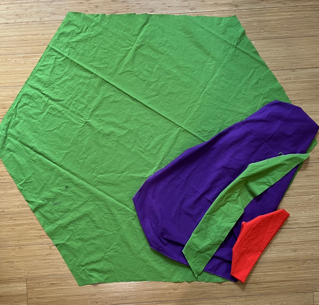 So far the only cutting I’ve done is to make the basic green hexagon shape. The rest will come, I’m sure.