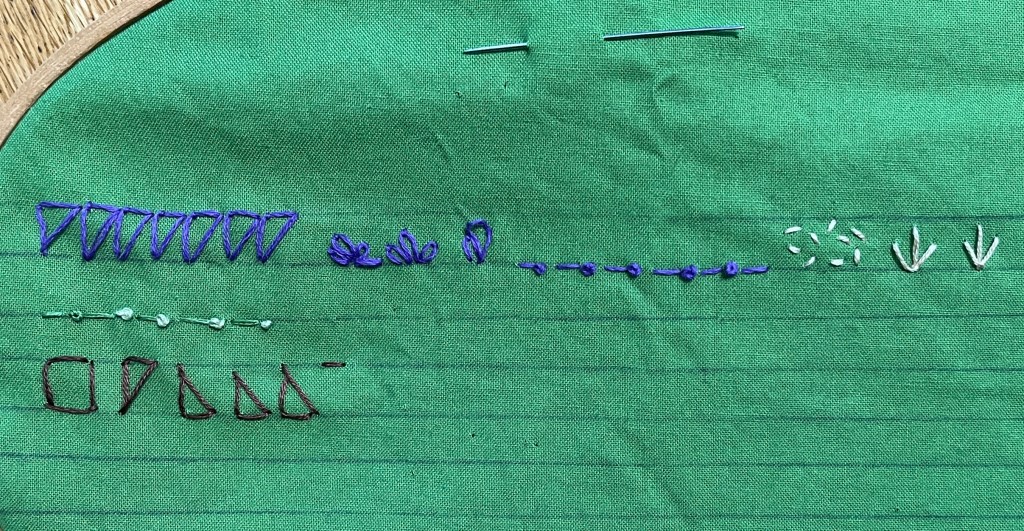 Watching videos of embroidery, I noticed the importance of straight lines, so I practiced on some.