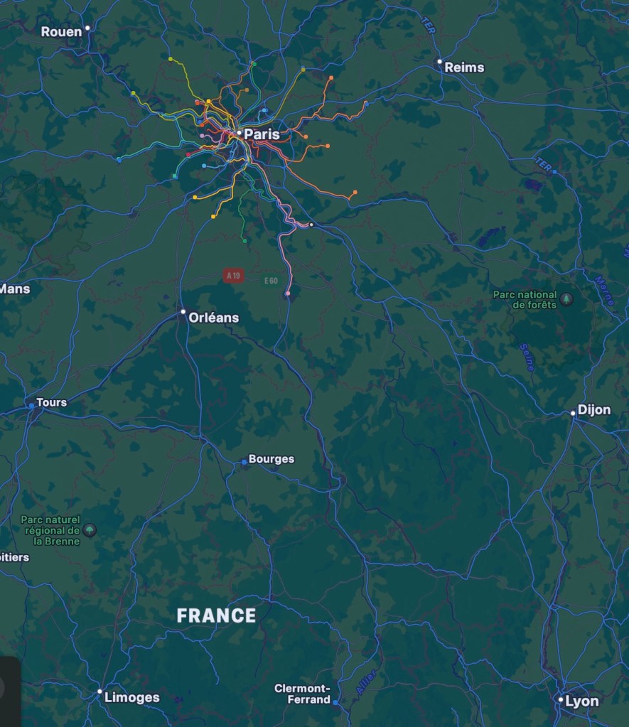 And, looking at maps and train lines, I am planning our next journey, from Paris to Lyon, then winding around to Orléans and up to Rouen. What will we see on our way? How will it let me see the country differently?