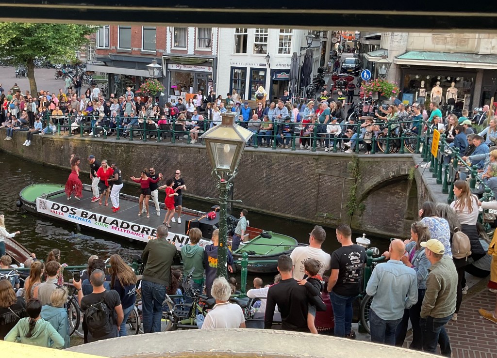A few dozen groups like dance classes, choirs, clubs, or just groups of friends, rode through the city’s canals in decorated boats, playing music and entertaining the crowd. It was clear that many of the paraders, as well as many of the audience, had had a few drinks. But, as far as I could tell, no harm done. Our hotel room on the second floor gave us a front row seat.