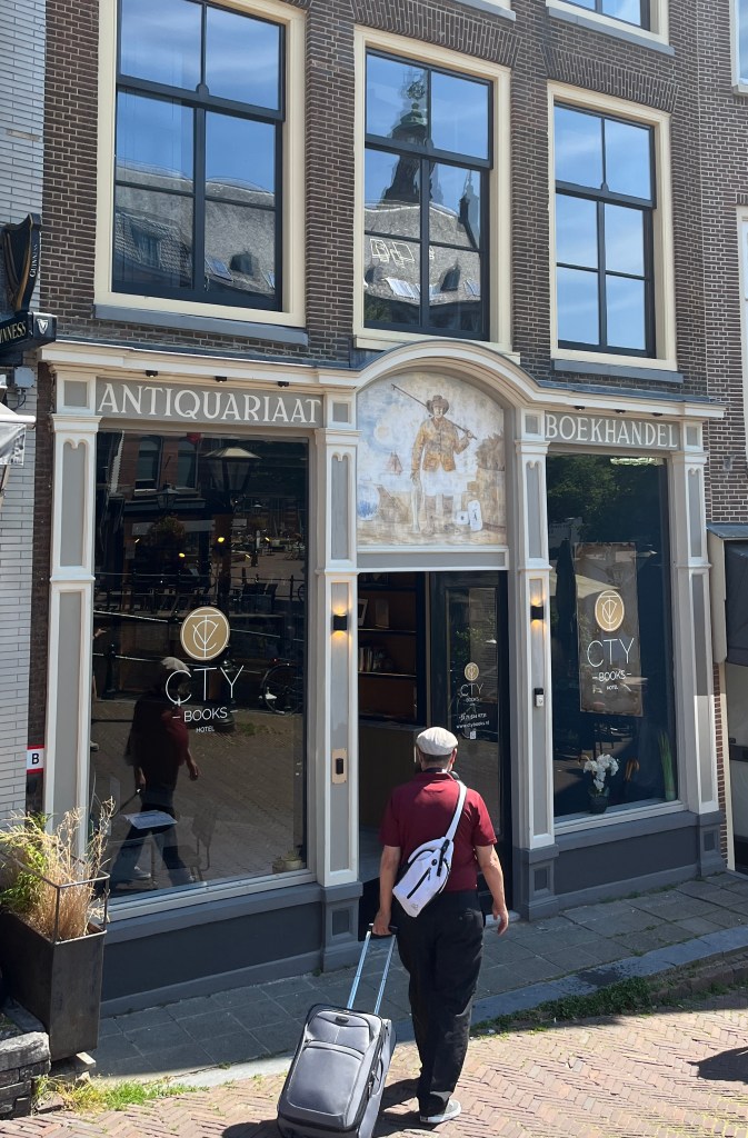 We are staying at a hotel called CTY Books, which is a modern place built inside a really old book sellers (from the 1700s). In a perfect blending of new and old, it has super nifty electronic locks but traditional Dutch stairs; AC for the hot days but is perched on a centuries-old canal.