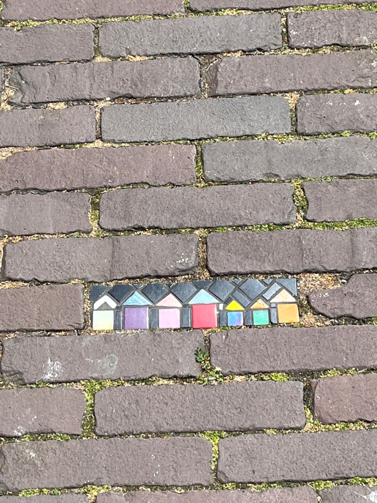 Walking through Leiden, we kept coming across wonderful quirks that reminded me of Portland. First, there were these little mosaics, each the size of one paving brick, in places around the city.