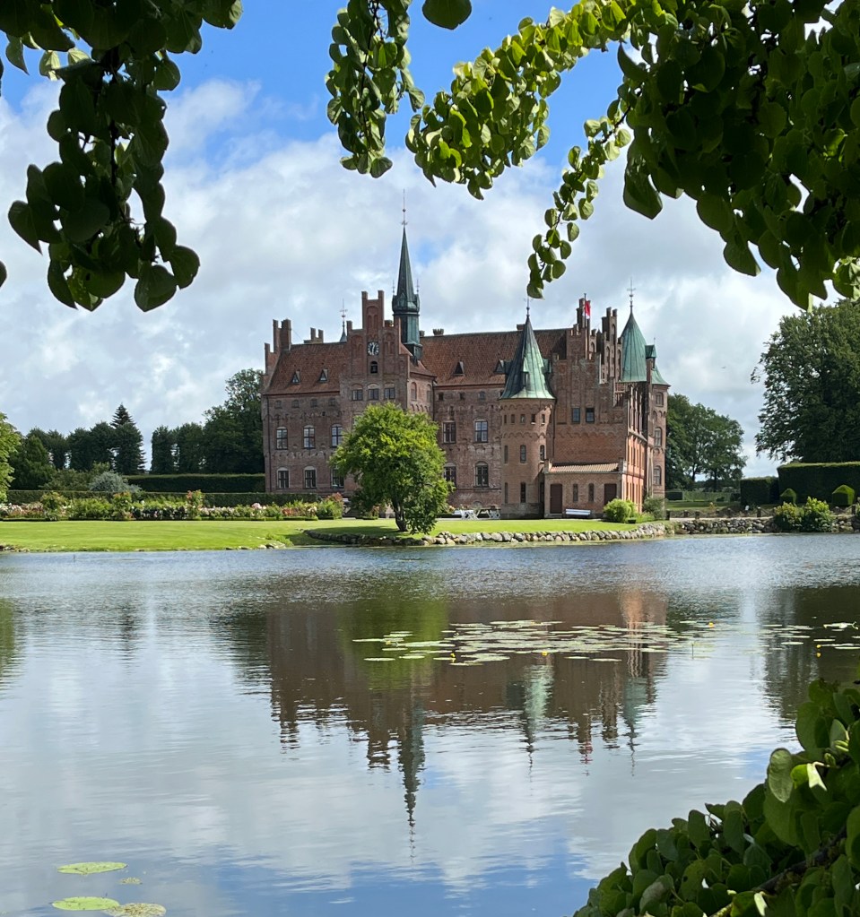 We found the castle of Egeskov, which Auntie Olga calls “The Castle-iest Castle in Denmark.” She is so right! Surrounded by a lake-like moat, lovely gardens, a maze, and lots of land, it has been named Europe’s best preserved Renaissance water castle. It has stood here since 1554 and is currently owned by the latest in a long line of sons, Michael Ahlefeldt-Laurvig-Bille, but operated by the Danish government as a historic landmark.