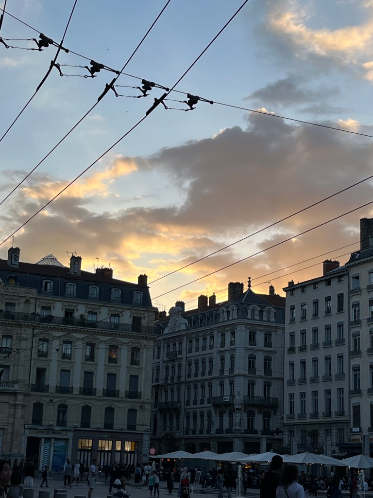 Once we found peace and space outside in the Place Terreaux, we saw our first sunset in Lyon and made our way back across the bridge and home.