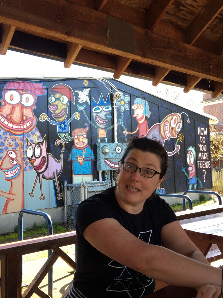 As we sat in the chilly sun (properly wrapped up, of course) we noticed the Division Do It Best hardware store across the street, and were helped by their friendly staff in buying my new garden wagon! Hooray! Now I will be able to haul gardening stuff to and from our “allotment” in the Blair Community Garden.