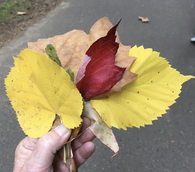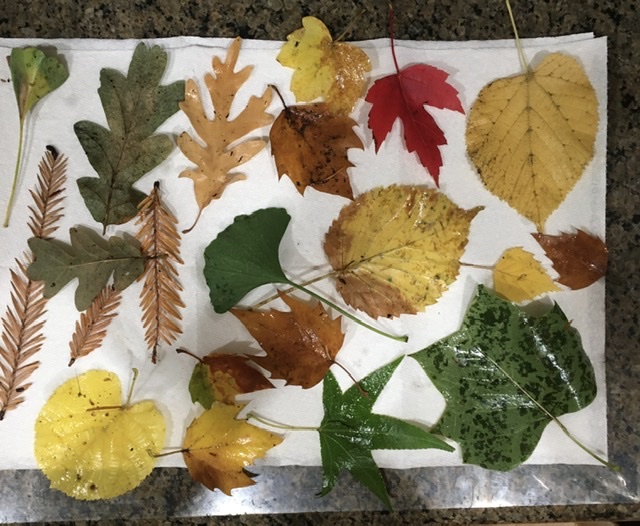 First, of course, you have to collect the leaves. This gets you out of the house and noticing things, which is always good. If the leaves are wet, lay them between paper towels with something heavy on top for an hour or so.