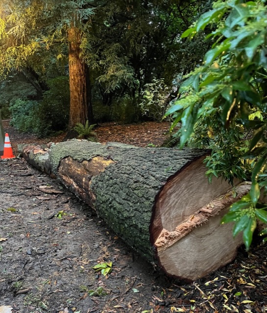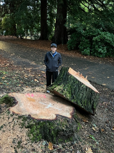 This enormous pine tree had been cut down, sawn into sections, and pushed off the path. It was an official act, obviously, of the Portland Parks Department. I have to assume they did it for a good reason. Maybe the tree was leaning, or suffering from a disease, or in danger of falling.