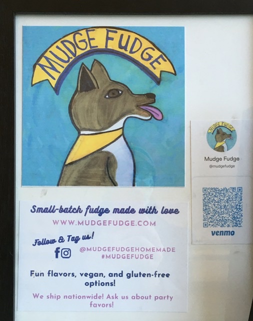Outside were some booths where well-bundled up folks sold goodies they had made. A lady named Sam sold fudge (named after her dog, Mudge) and the Fuzzy Chef Pottery folks had made funny ceramic pots adorned with banana slugs.