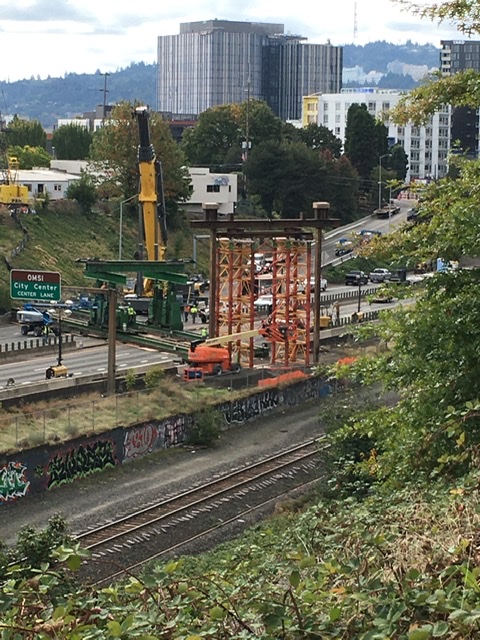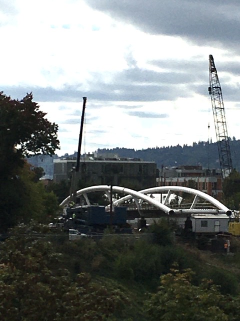 So yesterday, when we wanted to see the installation of the new Earl Blumenauer Pedestrian Bridge over the Banfield Freeway, we walked! It’s only a few miles north, after all.