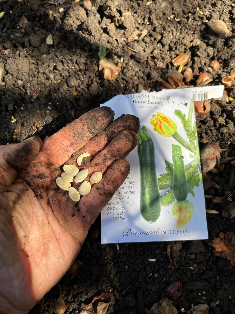We are also predicted to have a solid week of sunny, over 70 degree days, so I spent some time in the garden, pulling out the invasive mint that climbs through the fence and (TAA DAA!!) putting zucchini seeds in the ground! Their packet says they should “emerge” in 5 to 8 days. I will hold them to it!